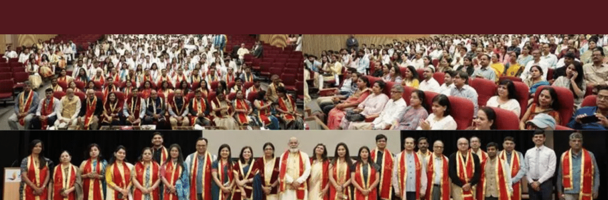 Moving on, Ms. Tanisha Agarwal called upon Prof. Manisha Seth (Chairperson PGDM) to the podium. Prof. Manisha Seth invited the honourable chairman to award diplomas to successful candidates of PGDM, PGDM (RM), and PGDM (FS) of the institute. All the graduating students took the PGDM oath and were conferred with their degrees by the dignitary. Further, the Dean-Academics, Prof. Sushma Vishnani announced the names of the meritorious graduating students, who were awarded medals by the honourable Guest of Honour Mr. Arvind Gupta.